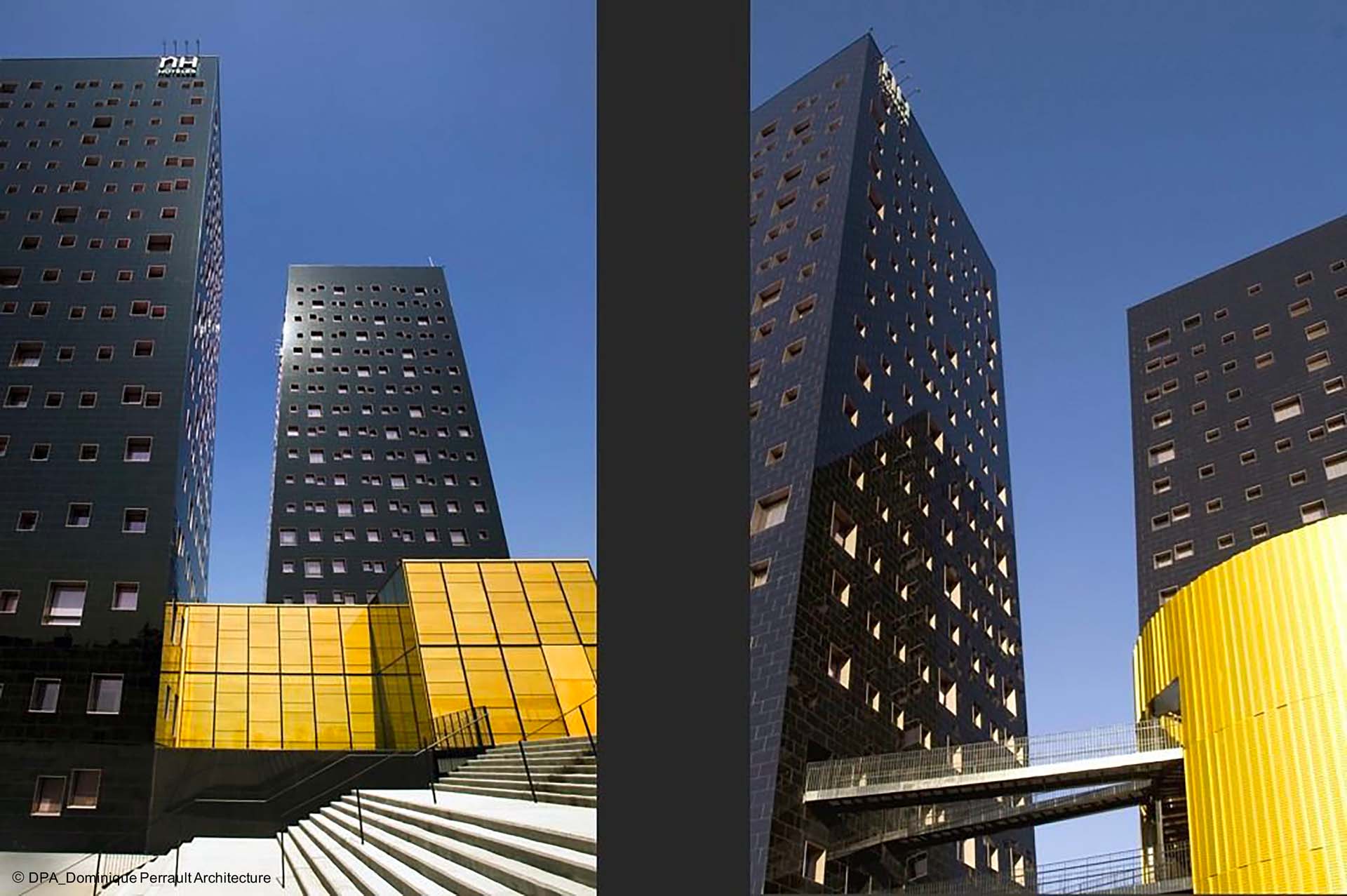 NH Hôtels Fiera Milano, deux tours hôtels 4*, Milan, Italie, 23800 m², budget 33M EUR. Concours, phases APS/APD/PRO/chantier. Projet achevé en Avril 2009.