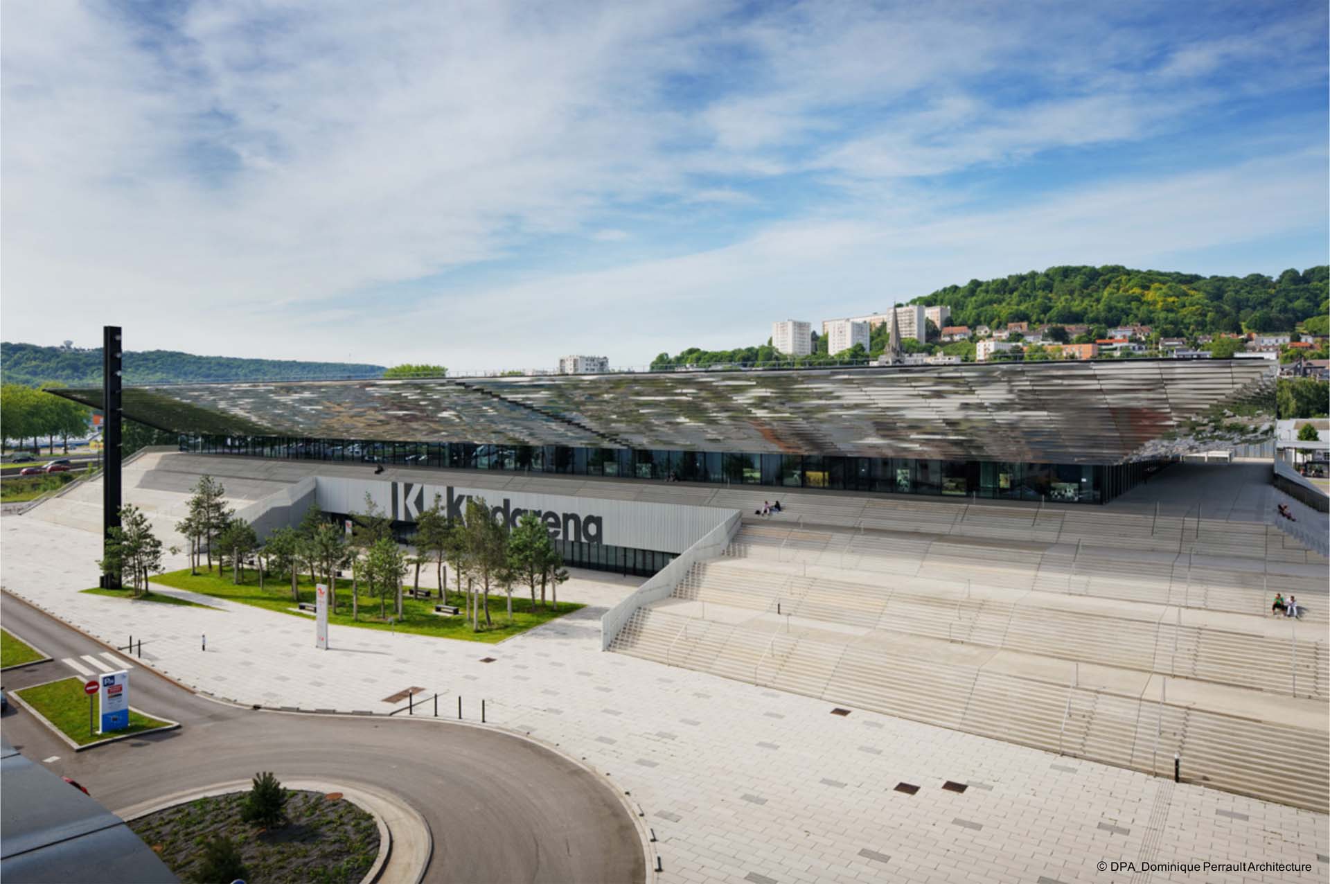 Palais des Sports, Rouen, France, 6000 places, 17.000 m², budget 42M EUR. Suivi : chantier. Projet achevé en Octobre 2013.