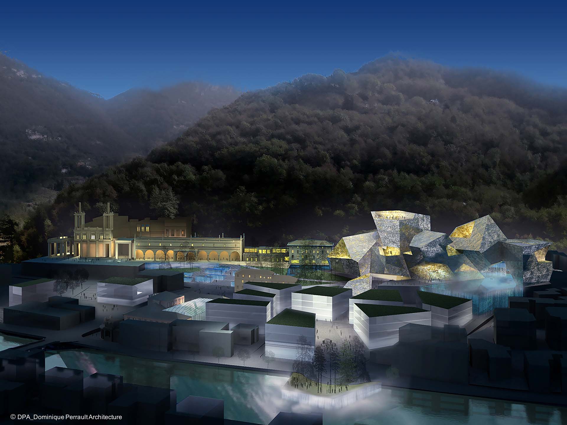 Thermes et Hôtel 5*, San Pellegrino, Bergame, Italie. Rénovation des thermes. Surface 35000 m², budget 150M EUR. Suivi : concours/APS/APD. Projet non réalisé.