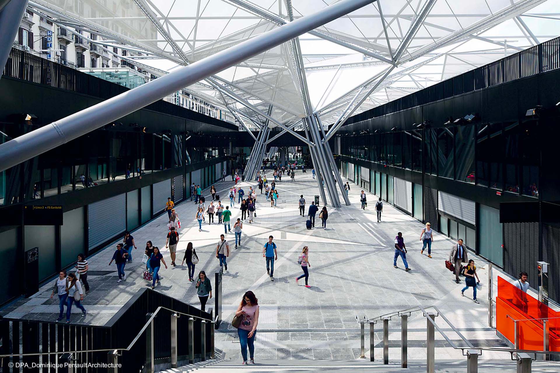 Piazza Garibaldi, Réaménagement global de la place en surface et en sous-sol, centre intermodal Naples, Italie, Surface d’intervention 59000 m², surface construite 21000 m², budget 42M EUR. Suivi : APS/APD/ PRO, chantier. Première partie du projet achevé en 2015. Projet global achevé en 2019.