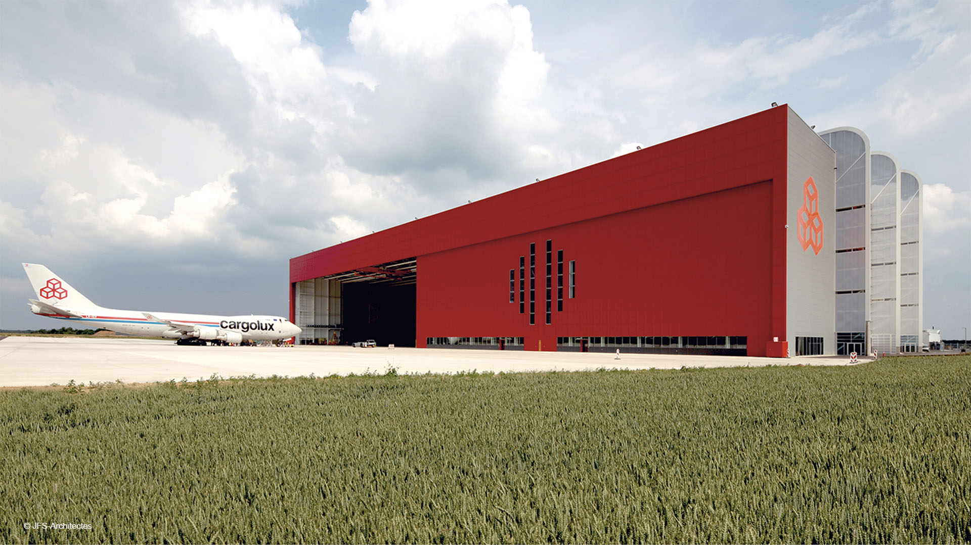 Cargolux, Luxembourg. Centre de maintenance des gros porteurs. Surface construite 34000 m², budget 67M€. Suivi : PRO/DCE. Projet achevé en 2009.